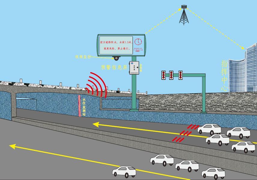 在城市隧道、低洼等易積水的關鍵地點設施水位監測點,并建設預警屏,實時顯示積水深度,第一時間提醒路過人員和車輛,防止險情發生。
